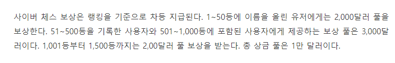 지난달 사이버 체스 이벤트가 있다는 기사가 나왔다.
