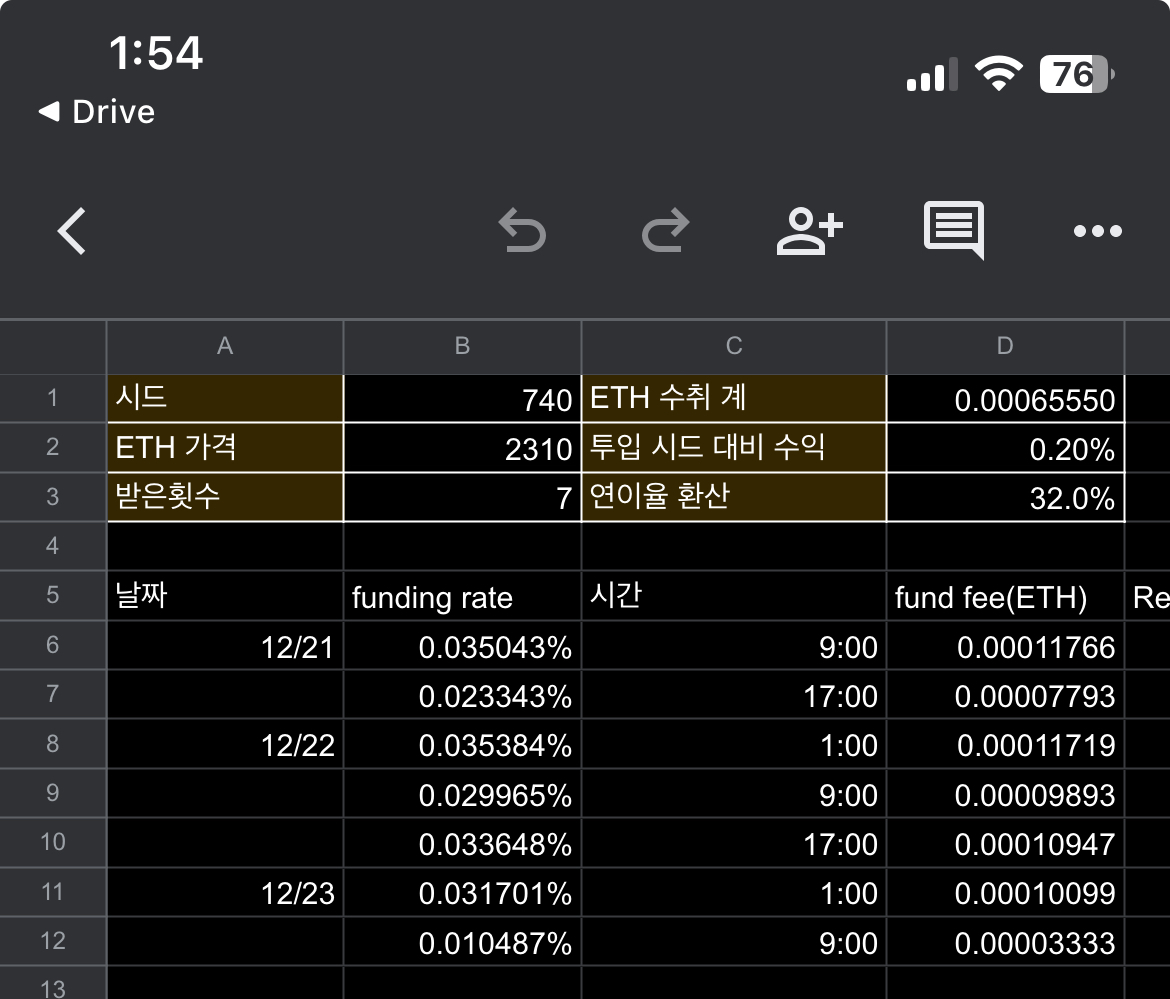 다행히(?) 롱 잡은 사람이 많아져서 펀비가 0.03% 정도의 값을 며칠간 유지했다. 토요일 아침부터 다시 0.01% 로 회귀했다. 롱과 숏의 비중이 앞으로 어떻게 달라질지 모르지만 적어도 0.01% 는 유지되는 것으로 보인다.
