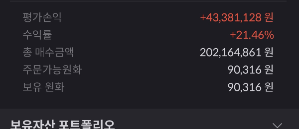 중간에 계속 오를 때 매매의 유혹도 있었으나 - 아 그냥 숏 정리하고 현물만 가져가면 오르지 않을까? - 결국 이번 동전 던지기나 마찬가지인거라서 (옛날 OCI 가 떠오른다. 13일인가 계속 올랐는데 내가 산 날부터 하락....) 참아냈다.