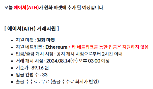 대상은 오늘 상장되는 ATH 코인