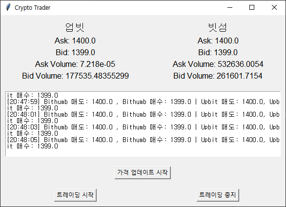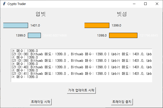 00_돈굴리기/Coin관련 chat gpt 일 시키기 파이프라인 2024. 8. 15. 21:13 반응형 처음에는 이랬던 GUI 가 이렇게 바뀌었다가 매도호가 매수호가에 따른 차이를 한눈에 보려고 했는데 정렬이 안 맞았다가. 아아 제발 뭐하나 맞추려니 참 어렵네 ㅎ 반응형 공유하기 게시글 관리 우리의 파이프라인 '00_돈굴리기 > Coin관련' 카테고리의 다른 글 차익거래의 지속성 (2) 2024.09.10 8월 수익 (6) 2024.09.01 상장 코인 빔 (0) 2024.08.14 7월 수익 (0) 2024.07.31 6월 수익 (0) 2024.06.29 '00_돈굴리기/Coin관련' Related Articles 차익거래의 지속성 8월 수익 상장 코인 빔 7월 수익