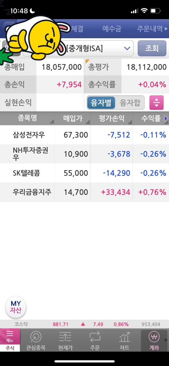 자동매매 몇번 하다기 10% 쯤 날려먹고, 배당주로 묻어두는 것도 나쁘지 않을 것 같아서 오늘 다 삼.